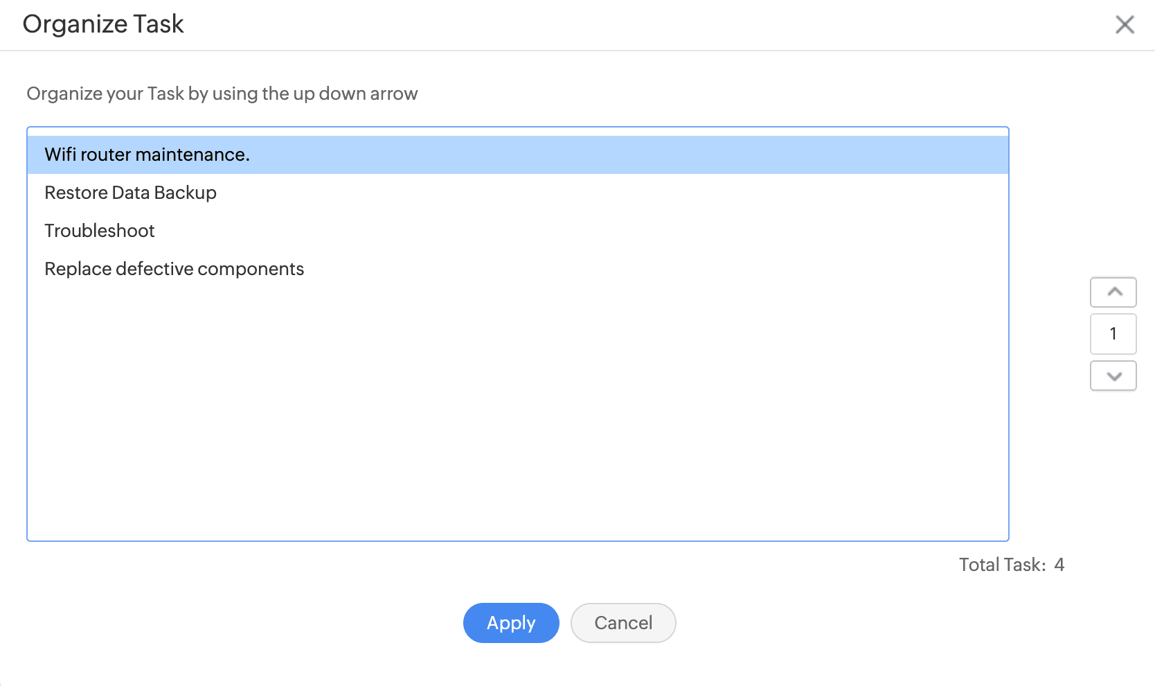 - In the Organize Tasks pop-up, click