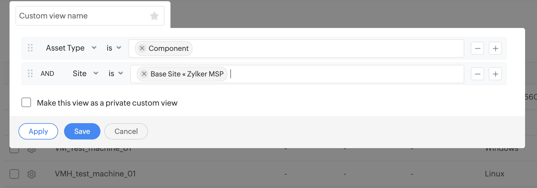 - Click Apply to temporarily filter assets without saving the criteria. The filter will be dismissed upon page refresh.