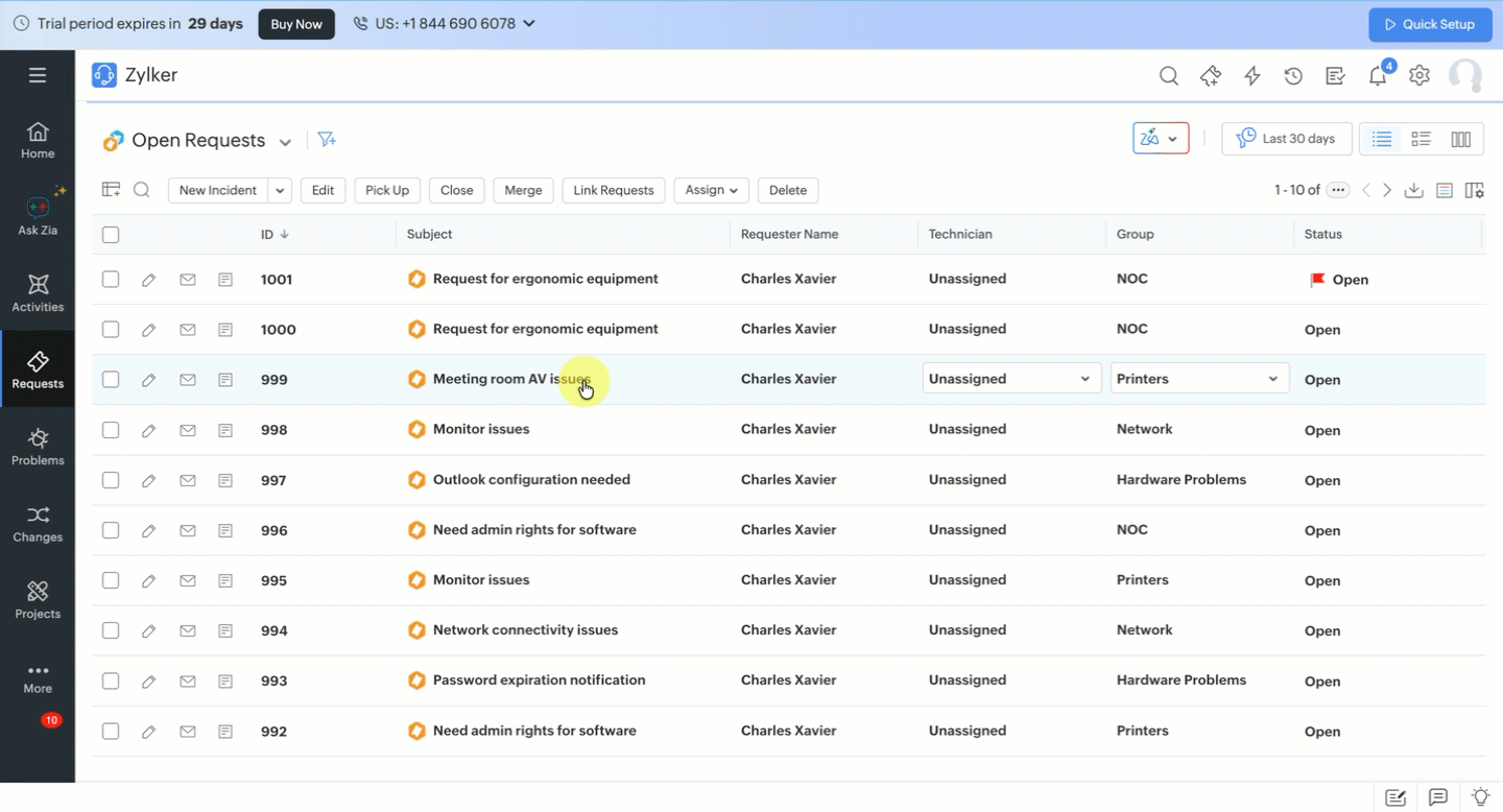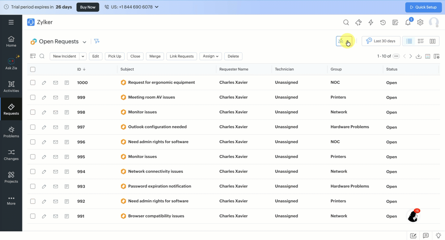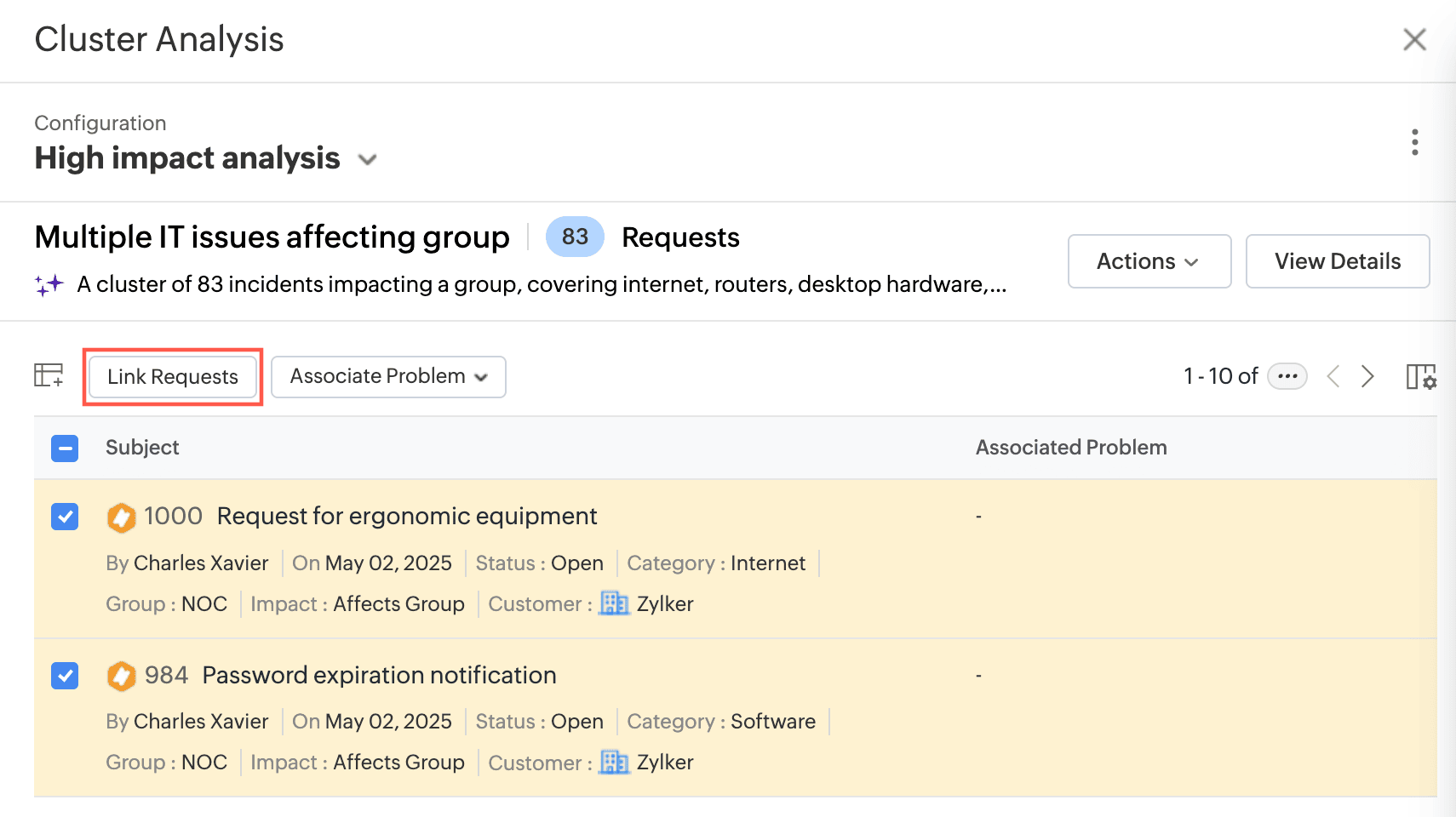 - In the requests list view page, select multiple requests, and click Link Requests.